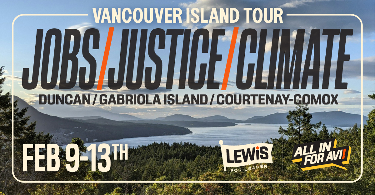 It’s time to fight for the future we deserve— one that creates good green jobs, enshrines justice, and secures a livable climate for working people. From Monday, February 9th to Wednesday, February 11th, Avi Lewis is heading out on a mini-tour of Vancouver Island to talk about how we can take on the billionaire class and fight for the bold solutions that our climate and communities deserve.
