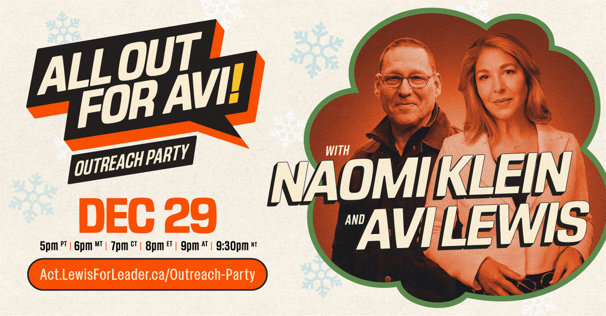 This holiday season, grab your favourite festive drink and join Naomi Klein and Avi Lewis for a different kind of family gathering — a get together of our extended democratic socialist family from coast to coast!