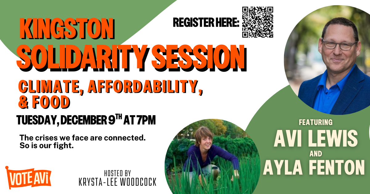Join Avi Lewis and Ayla Fenton as the discuss the intersection of the multiple crises we are facing: a climate emergency that threatens our future, an affordability crisis of the everyday emergency of just trying to get, and the concentration of wealth in power in the hands of so few threatening our ability to achieve food sovereignty.