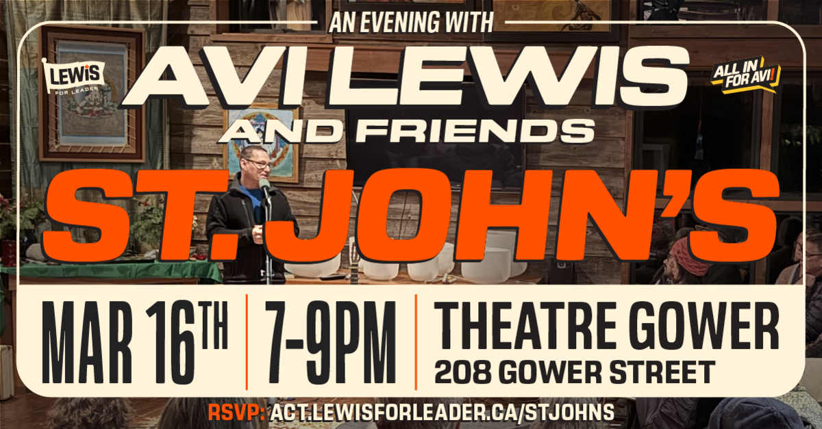 No matter where we live in Canada, we’re all in the same boat: trying to get by in an impossible economy. Across Newfoundland and Labrador, people are feeling the weight of a system that’s failing them – from skyrocketing heating bills and rising food insecurity to a strained healthcare system and a climate crisis that is already reshaping communities. Avi is running to lead a federal NDP that is bold enough to meet this moment: with public options to stop price-gouging, head-to-toe healthcare, and a Green New Deal that will create millions of good-paying jobs and lower utility bills across the country.